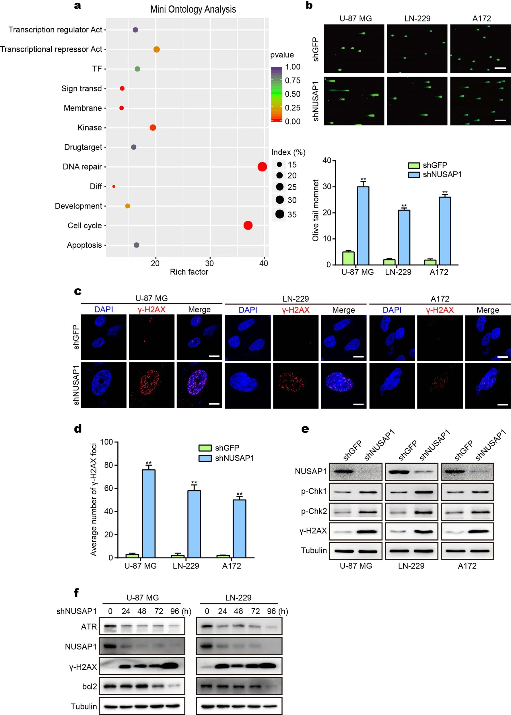 核仁纺锤体相关蛋白(NUSAP1)是一个微管结合蛋白,在正常的细胞生命活动,比如有丝分裂的过程中有重要作用。团队围绕NUSAP1基因开展研究,发现NUSAP1在胶质母细胞瘤中高表达,与胶质母细胞瘤患者的不良预后密切相关。NUSAP1通过其NH2基末端的SAP结构域调控ATR的稳定性,进而维持胶质母细胞瘤细胞的恶性增殖和化疗耐药性。而下调该因子则显著降低了肿瘤细胞的增殖能力和耐药性。该研究有望为神经退化性疾病的靶向治疗及药物开发提供有力的理论依据。