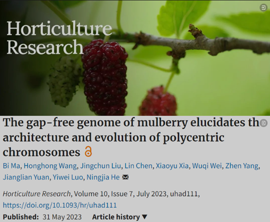 2023年5月,国际著名学术期刊Horticulture Research上线PA视讯官网桑树研究团队题为“The gap-free genome of mulberry elucidates the architecture and evolution of polycentric chromosomes”的研究论文。这是桑树首个报道的无缺口参考基因组,是继2013年桑树基因组图谱发表后,桑树基因组学领域中又一里程碑事件。