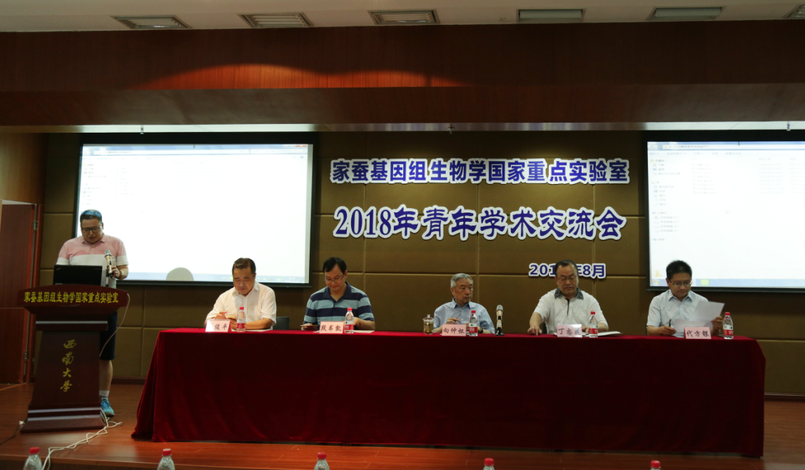 2018年8月29日,家蚕基因组生物学国家重点实验室“2018年青年学术交流会”在实验室主楼蚕学宫召开。本次会议旨在搭建实验室青年学术交流平台,促进青年学者及研究单元间的交流与合作。PA视讯官网副校长丁忠民,实验室学术委员会主任向仲怀院士,校科技处副处长段书凯,生物技术学院党委书记吴俊平、院长兼实验室主任代方银、副书记潘玉峰、副院长徐汉福和谢洁,实验实验室副主任何宁佳、崔红娟、程道军、潘国庆,以及实验室师生共计200余人参加了会议。大会由实验室副主任潘国庆教授主持。