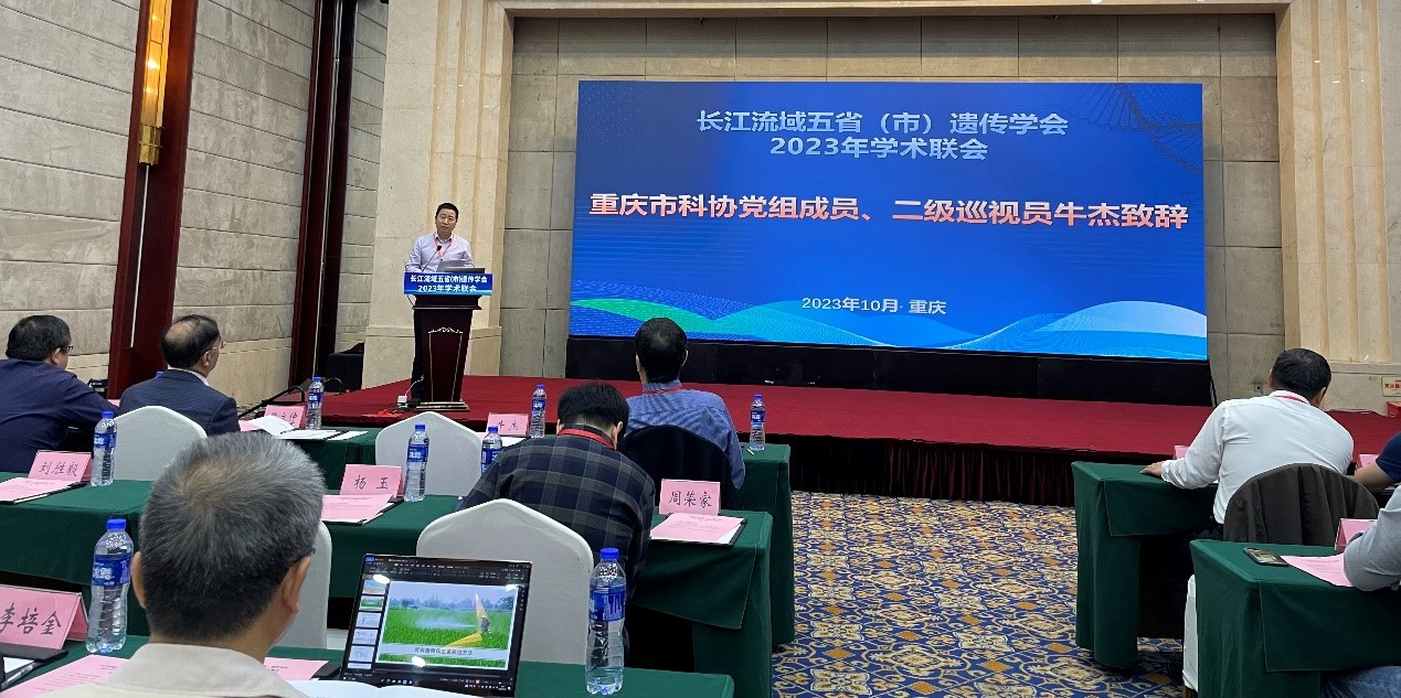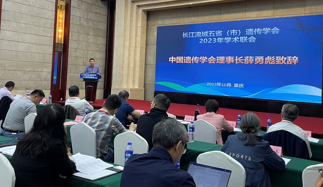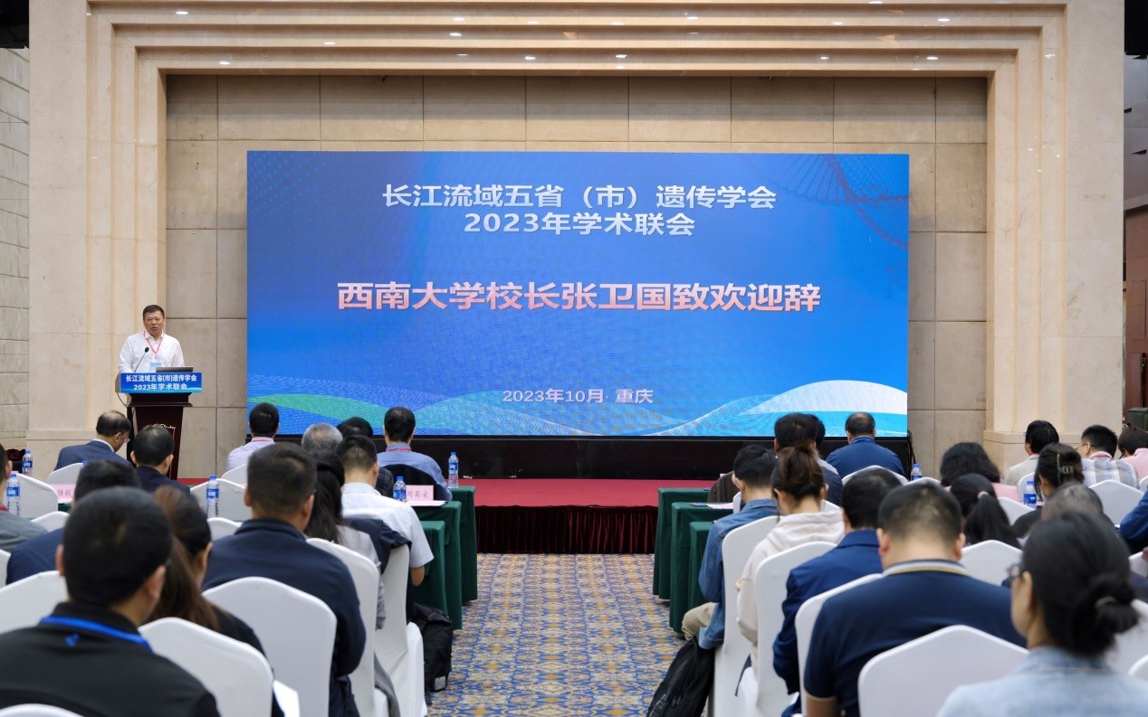 由重庆市遗传学会、安徽省遗传学会、湖北省遗传学会、湖南省遗传学会、江西省遗传学会共同主办,我室参与承办的“长江流域五省(市)遗传学会 2023 年学术联会”于2023年10月11-13日在重庆北碚海宇温泉大酒店召开。全国政协常委、湖南省政协副主席、南华大学校长张灼华出席本次会议。在12日上午举行的开幕式上,中国遗传学会理事长薛勇彪、重庆市科协二级巡视员牛杰、PA视讯官网校长张卫国分别致辞。来自五省(市)部分高校、科研院所、医院等单位的近300名遗传学科研教学人员和研究生参加本次会议。