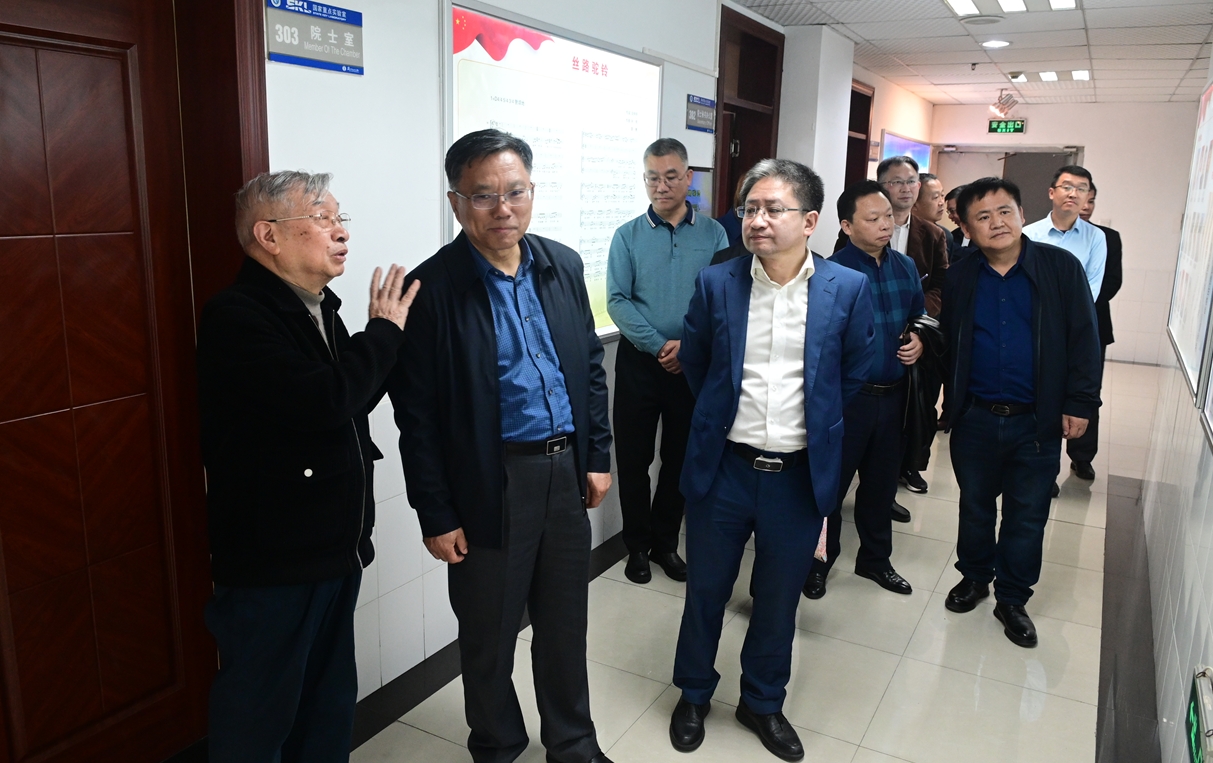最后,时书记一行来到资源昆虫全国重点实验室(原家蚕国家重点实验室)主楼蚕学宫,向仲怀院士率研究骨干与时书记一行亲切面会。在展廊里,向院士亲自向时书记介绍全国重点实验室的沿革和目前有关情况。