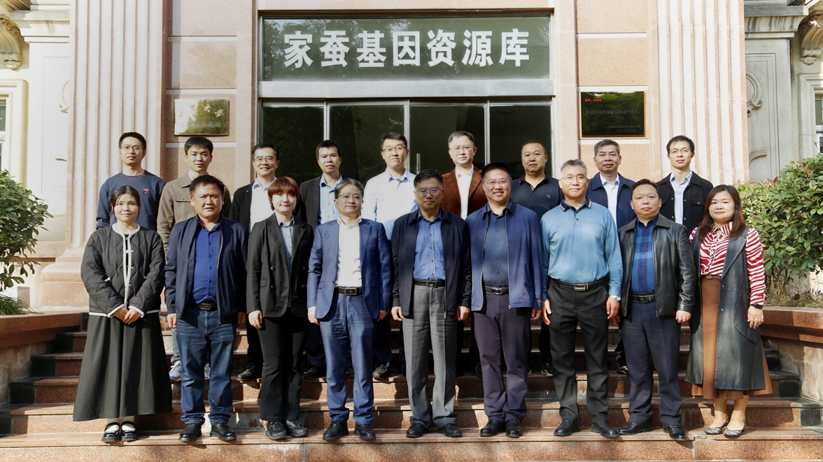 10月29日下午,全国畜牧总站党委书记、国家畜禽遗传资源委员会副主任兼办公室主任时建忠,全国畜牧总站畜禽资源处韩旭,国家畜禽遗传资源委员会蚕专业委员会专家组,在结束是日上午举行的2023年蚕新品种初审会议之后,一同调研了国家蚕遗传资源基因库(重庆)的资源保护利用与建设情况。向仲怀院士在蚕学宫面会时建忠书记一行,并率领蚕学所全体在校教授与时建忠书记一行座谈。