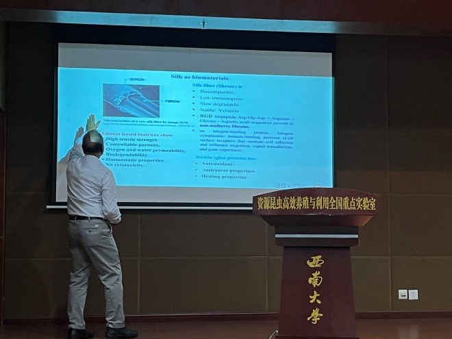 应资源昆虫高效养殖与利用全国重点实验室邀请,2023年10月19日-11月19日,印度科学院院士、蚕丝领域著名专家、葡萄牙米尼奥大学Subhas Kundu教授来实验室开展科研合作与学术交流。