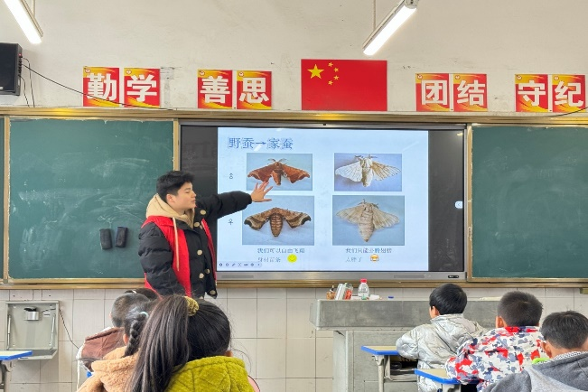 习近平总书记指出:“教育兴则国家兴,教育强则国家强。”教育是乡村的重要支柱,承担着为乡村发展提供人才条件、文化条件等重要功能。“国家投我以桃,我将报之以李”,资源昆虫高效养殖与利用全国重点实验室“丝致千里”志愿服务队积极发挥青年学生的作用,践行“奉献、友爱、互助、进步”的志愿服务精神,深入乡村教育,用实际行动为乡村学生送去温暖,用积极向上、乐于奉献的精神感染同学们。不仅为自己的青春画上了浓墨重彩的一笔,也在小朋友们的成长道路上点亮了一盏明灯。