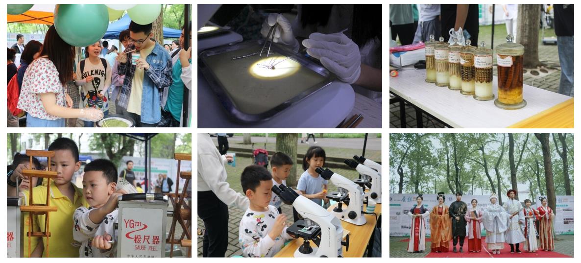 实验室还进行了丰富多彩的线下参观讲解,从“生命科学研究中精彩摄影照片展示”、到“特色桑树种质资源展示”以及“世界最大蚕基因库的奇观”到“蚕桑活性物质的医学转化利用”再到“蚕桑产业的特色产品展示”开展了形式多样的群众性科普活动,展示家蚕国重科技创新成果,让社会公众在参与体验中感受科技的魅力。仅5月28日一天就接待了上百名社会大众,深受好评。5月21日实验室和蚕桑纺织与生物质科学学院在PA视讯官网樟树林开展了主题展览活动,展示了蚕丝文化几千年历史积淀,彰显出蚕桑产业发展所取得的重大成果和多元创新成效。现场的科普区、美食区、游戏区、展品区、体验区体验式地介绍了当今蚕桑产品在科研和生活中的应用,得到了参与者的广泛好评。