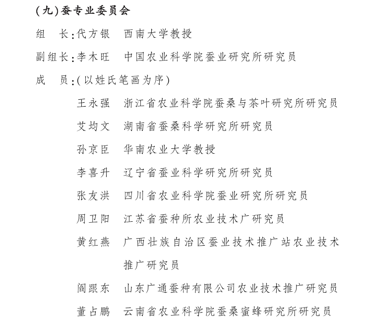 第四届国家畜禽遗传资源委员会蚕专业委会由11名专家组成,名单如下: