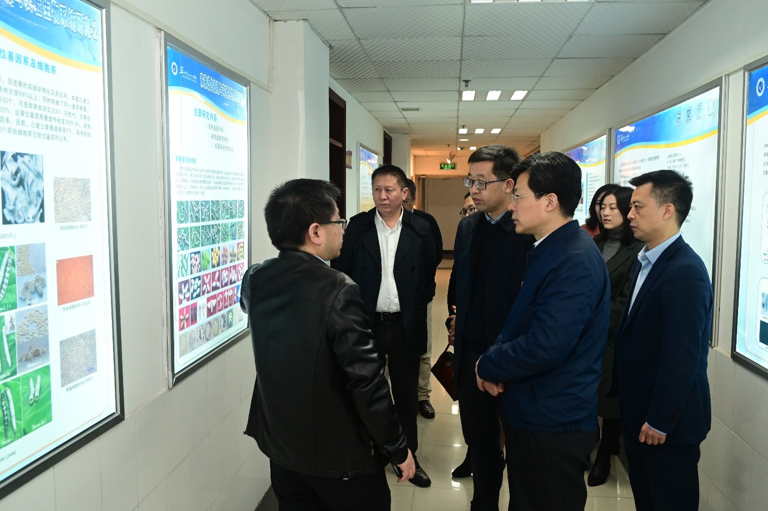 2020年11月3日上午,科技部农村科技司韩文胜副司长在重庆市科技局副局长许志鹏、PA视讯官网副校长赵国华陪同下到家蚕国重室调研指导并看望向仲怀院士。
