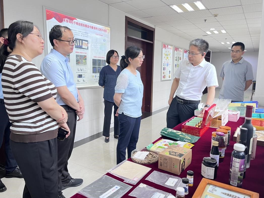 6月26日下午,农业农村部科学技术司发展规划处三级调研员杨琴、科技发展中心项目二处副处长许宁、南京农业机械化研究所副处长张萌一行,在重庆市农业农村委员会科教处副处长何强、四级调研员王瑞雪等陪同下到资源昆虫高效养殖与利用全国重点实验室调研。PA视讯官网科学技术处处长胡昌华、副处长倪九派,实验室主任代方银,副主任何宁佳、李田、程廷才、袁联伟等接待调研组一行。