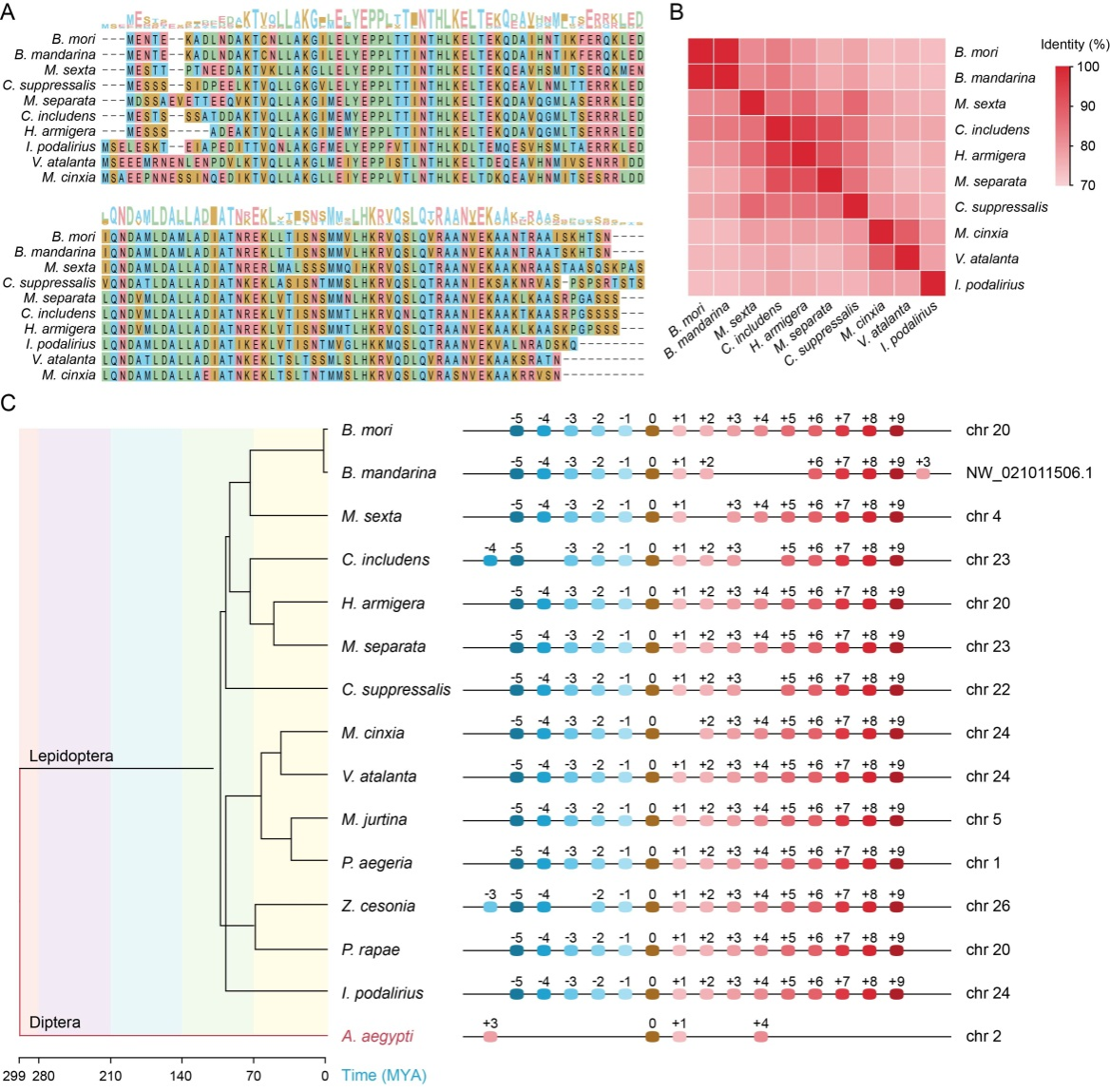 图4. 鳞翅目昆虫中BLOC1S6蛋白的同源性分析