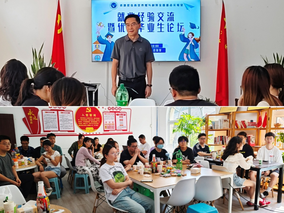 为响应国家和学校关于促进高校毕业生高质量充分就业的号召,切实提升研究生服务国家战略需求与社会发展的就业竞争力,2025年6月11日上午,资源昆虫全国重点实验室在蚕学宫101会议厅举行研究生就业经验分享会。实验室辅导员蔡晓霞老师主持活动,分管领导程廷才副主任出席,实验室在读研究生及部分毕业生积极参与。现场互动热烈,交流氛围浓厚。