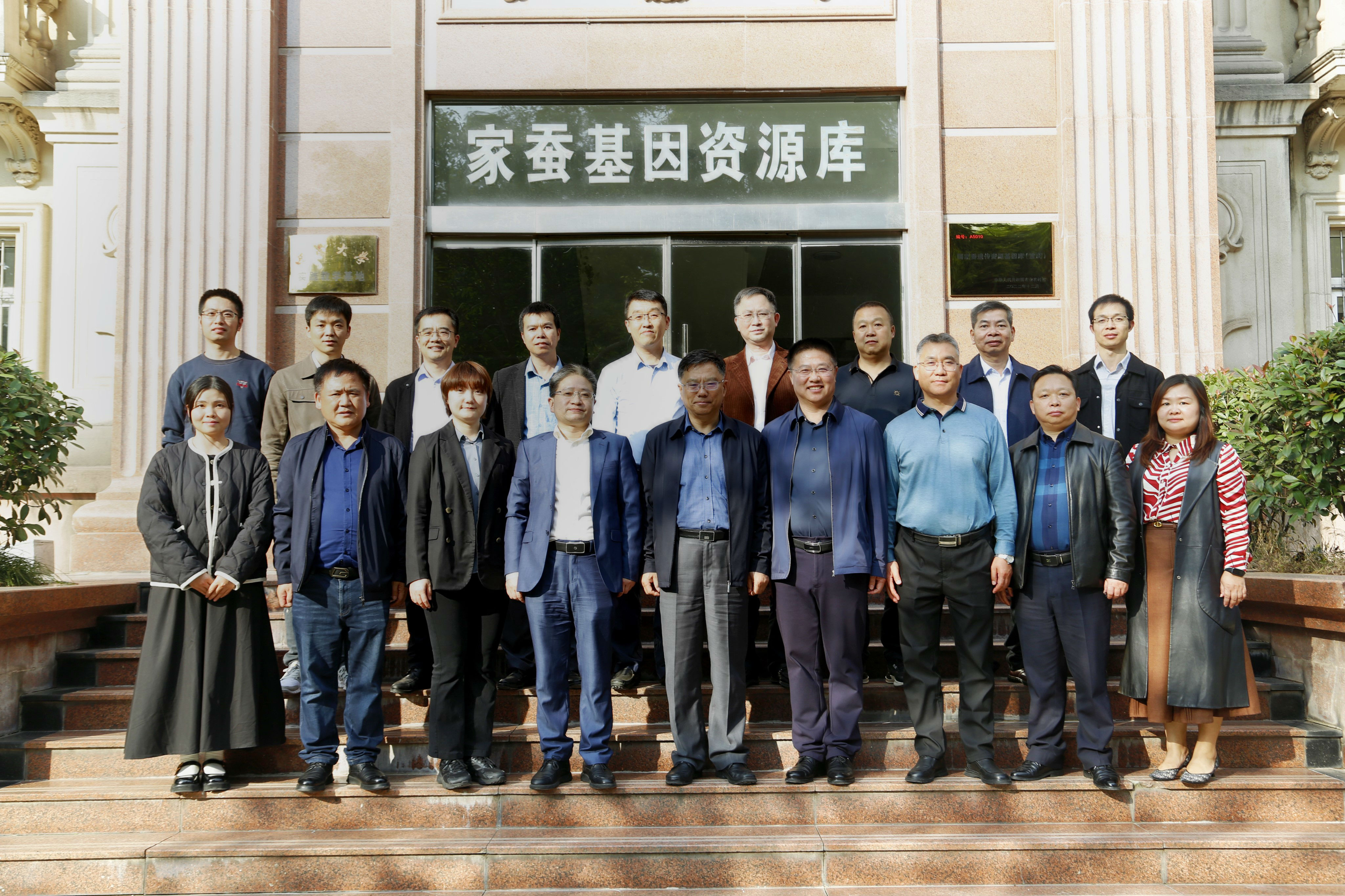 10月29日下午,全国畜牧总站党委书记、国家畜禽遗传资源委员会副主任兼办公室主任时建忠,全国畜牧总站畜禽资源处韩旭,国家畜禽遗传资源委员会蚕专业委员会专家组,在结束是日上午举行的2023年蚕新品种初审会议之后,一同调研了国家蚕遗传资源基因库(重庆)的资源保护利用与建设情况。向仲怀院士在蚕学宫面会时建忠书记一行,并率领蚕学所全体在校教授与时建忠书记一行座谈。