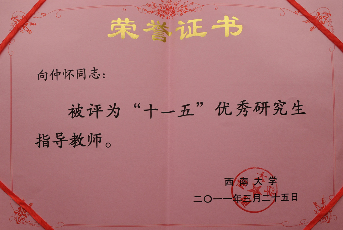 20110325向仲怀院士被评为PA视讯官网十一五优秀研究生指导教师