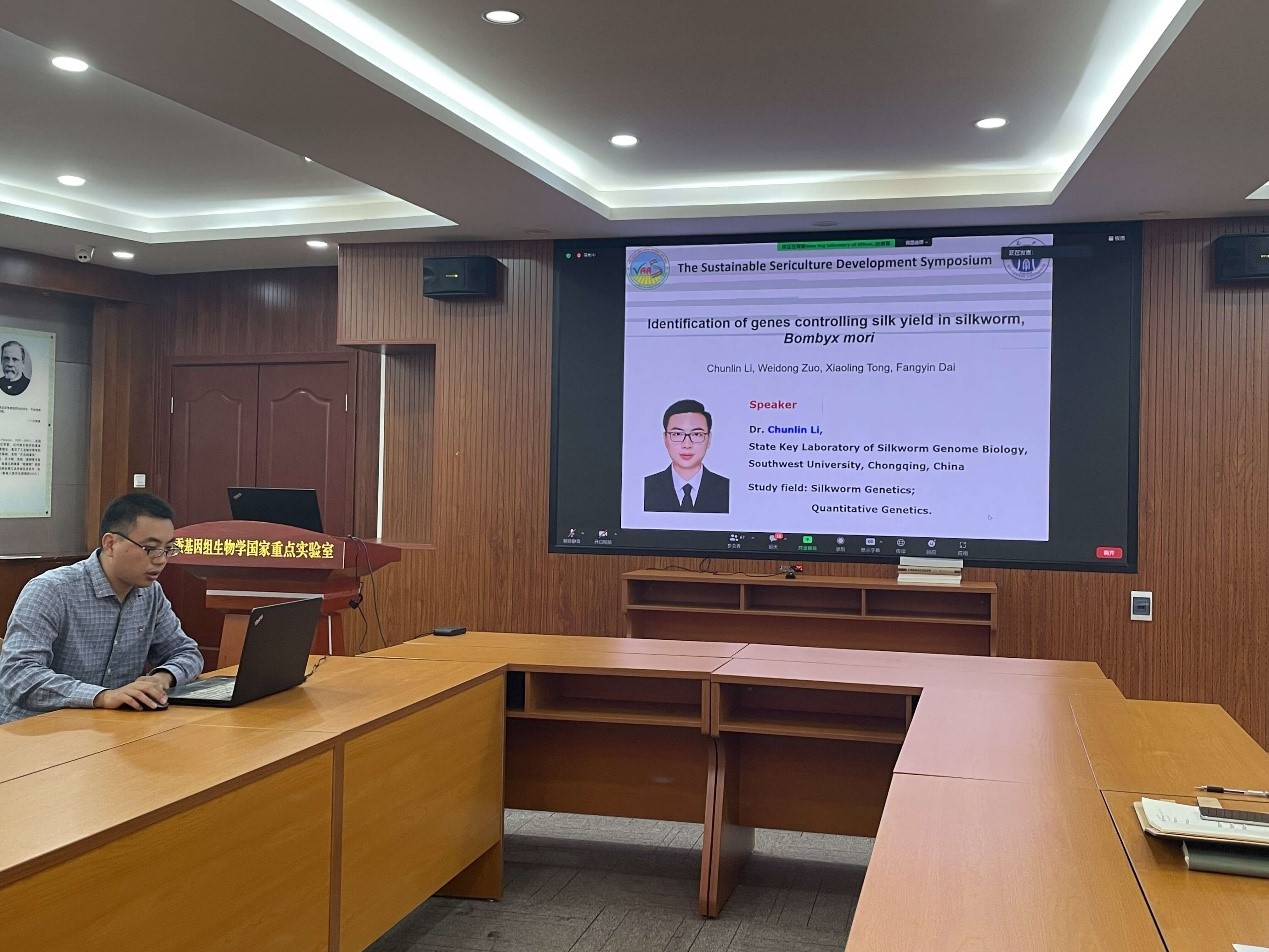 2022年10月19日,由越南农业科学院和越南农村发展管理局合作举办的“蚕业可持续发展”国际会议在越南首都河内召开。会议以线上、线下方式同步进行。来自印度、韩国、泰国、柬埔寨、菲律宾等国专家学者及我国PA视讯官网、华南农业大学、广东省农业科学院蚕业与农产品加工研究所、安徽省农业科学院蚕桑研究所等单位有关专家在线参加了本次会议。家蚕国重室在PA视讯官网科技楼四楼学术报告厅设分会场在线参加了会议,代方银主任、潘国庆副主任等实验室领导和部分师生参加会议。